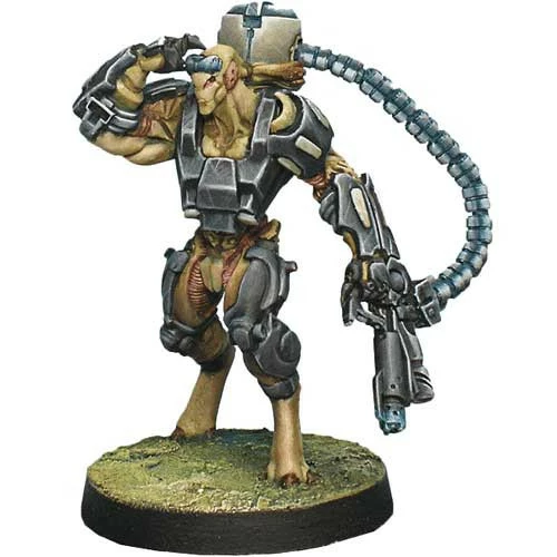 Tohaa High Command, true to its doctrine, quickly recognized the military potential of the Exaltation project for the Chaksa race. As soon as the first tests were successful, the Trident involved itself in the project to ensure a measure of control over its results. Therefore, during the formation process of exalted Chaksa, they are inculcated with the precepts and ideals of the Trident. Through this indoctrination the High Command ensures a constant number of Chaksa recruits that, following their formation period, increase the numbers of Tohaa military forces. Chaksa make excellent light operatives. Their resistance and exceptional physical qualities make them all-terrain troops, able to march without pause, carrying localization biodevices and all the supplies and equipment of a combat force under the worst environmental conditions without complaint. However, it is in the midst of combat where Chaksa Auxiliaries stand out for their bravery and their unbreakable loyalty to the Tohaa cause, fighting to their last breath for those who exalted them to sentience and allowed them win their place on the galactic map.
